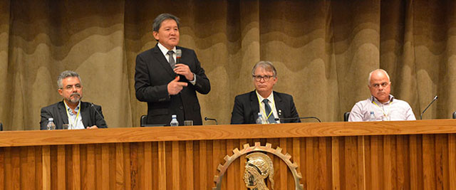 O Presidente do Crea-SP, Engenheiro Francisco Kurimori, compôs a mesa dos trabalhos ao lado do Presidente do Crea-RJ, Eng. Eletr. e Seg. Trab. Reynaldo Rocha Barros; do Presidente do Crea-ES, Eng. Agr. Helder Paulo Carnielli; e do Diretor Técnico e de Fiscalização do Crea-MG, Marcus Vinicius Gervásio